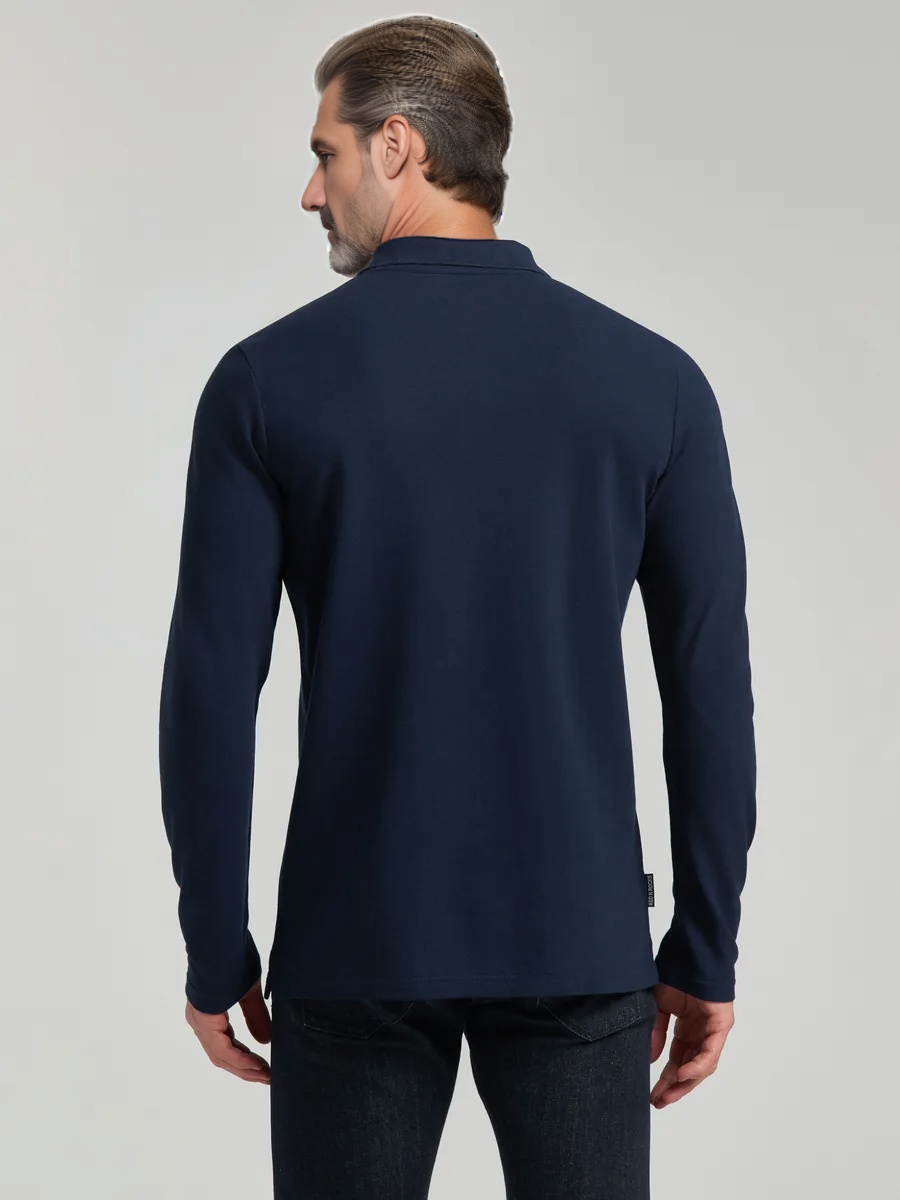 Футболка-поло подчёркивает силуэт, выглядит стильно и сдержанно — отличный вариант как для делового casual, так и для повседневного гардероба.