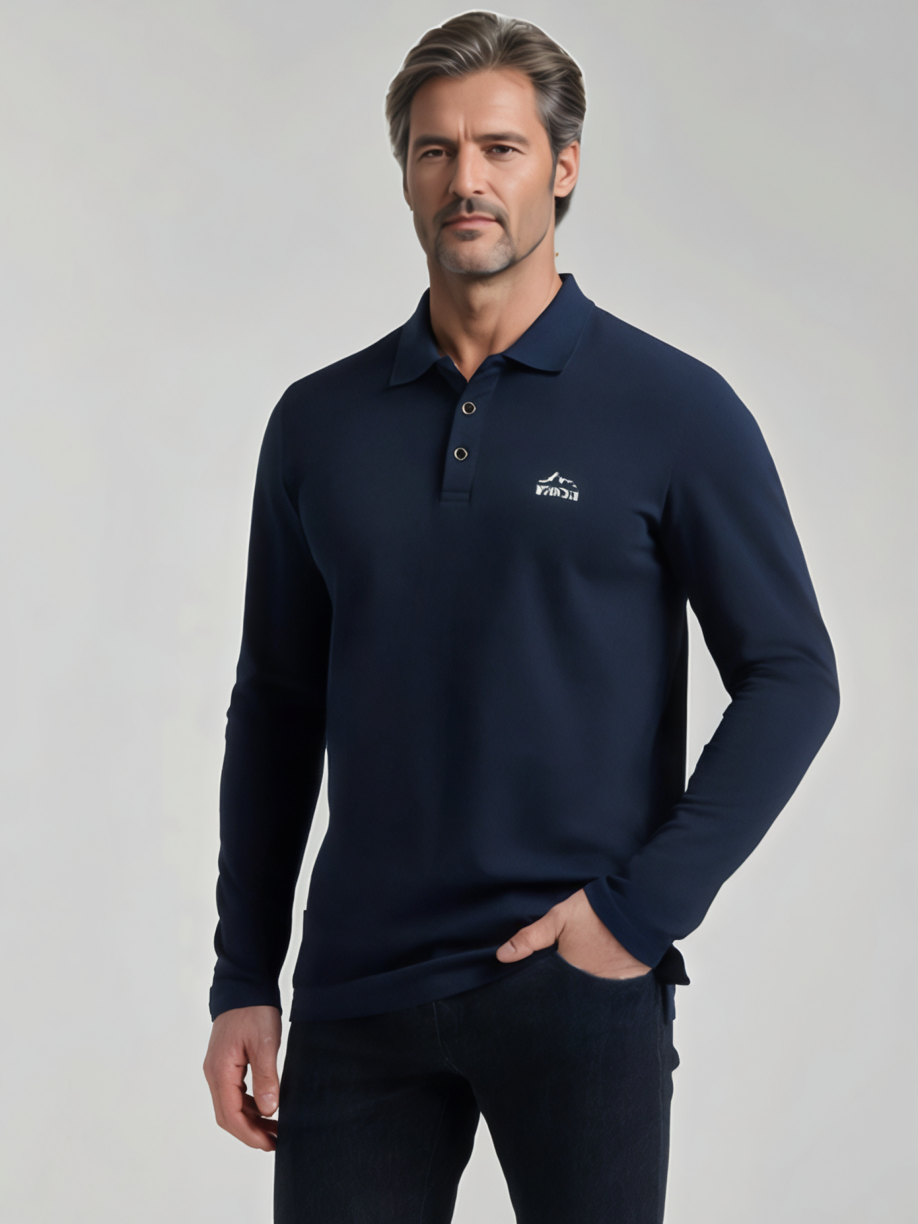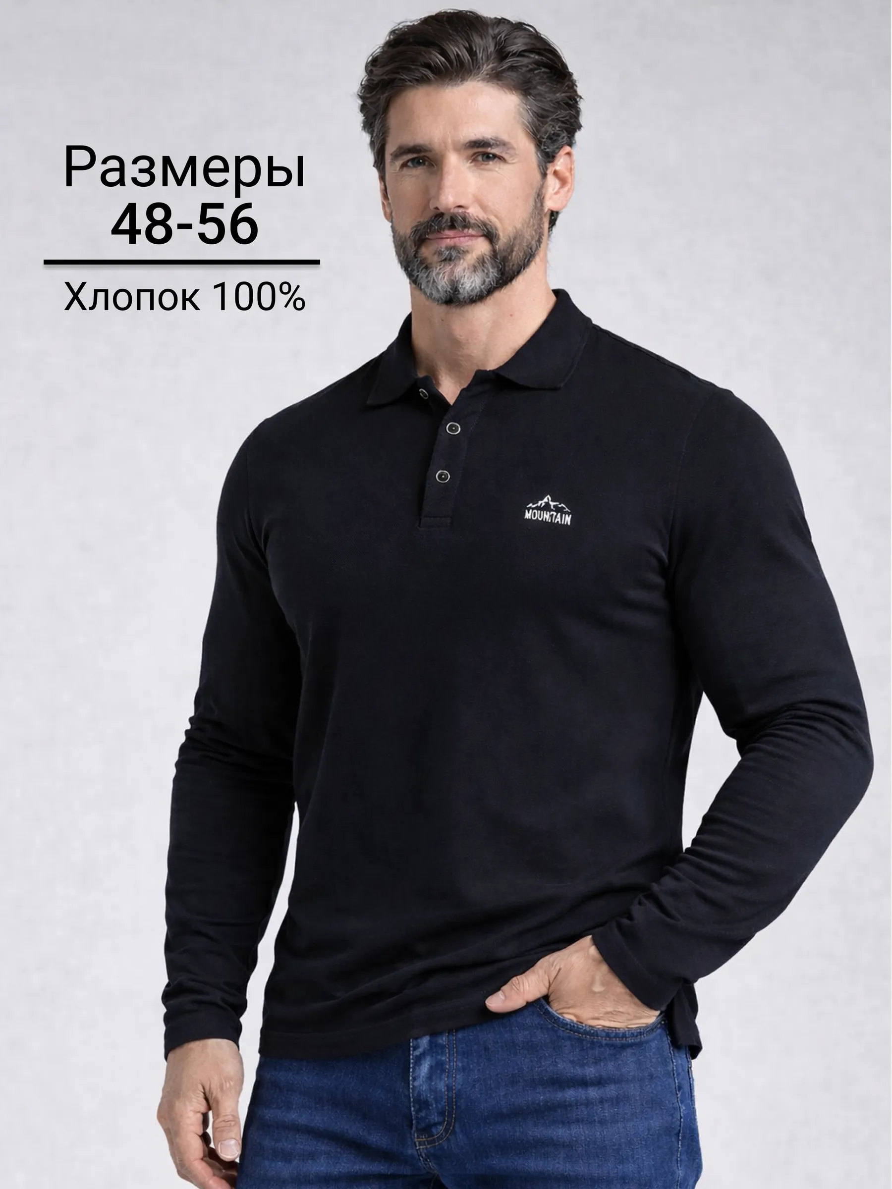 Футболка-поло из хлопкового полотна "пике". Модель поло лонгслив с длинными рукавами.. На полочке застежка-планка на пуговицах. На полочке джемпера вышивка горы+надпись. Мужская кофта с длинным рукавом — идеальный выбор для тех, кто ценит комфорт, аккуратный внешний вид и универсальность в одежде.