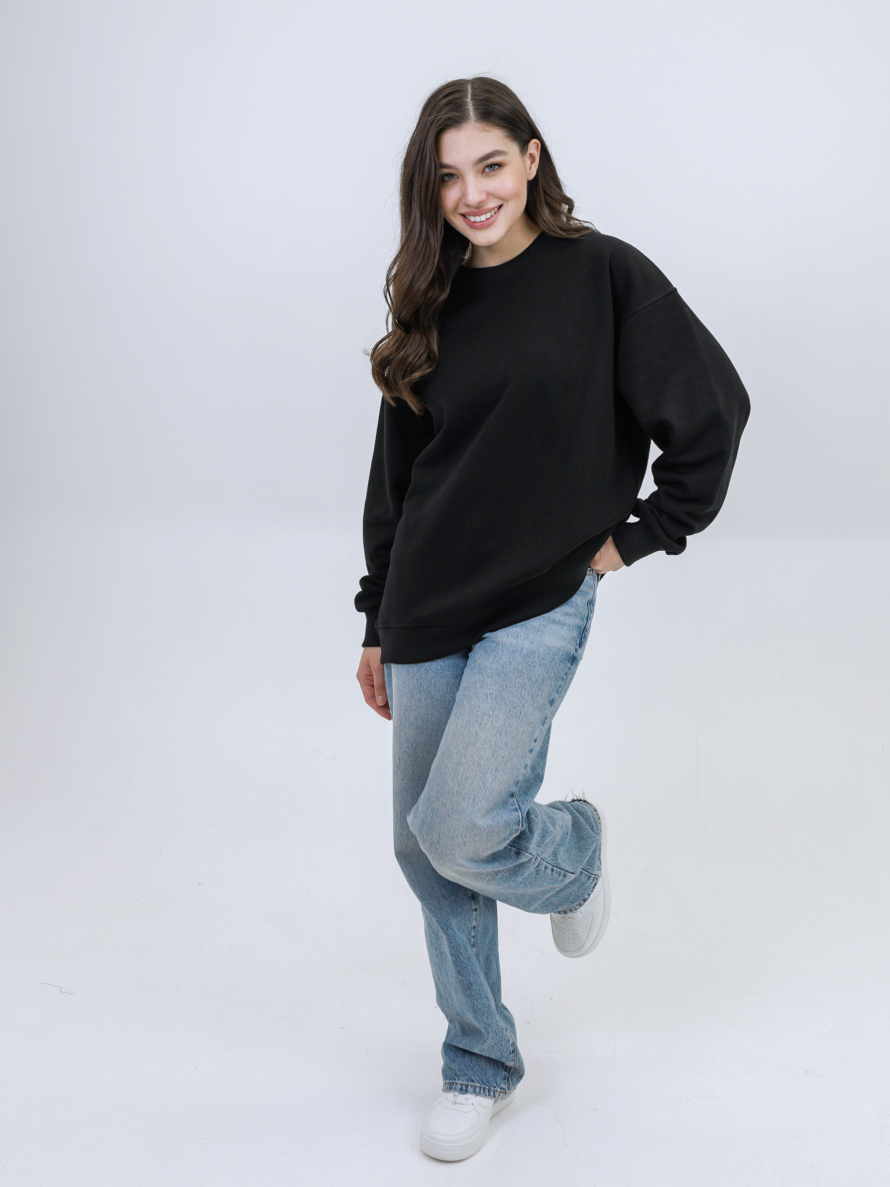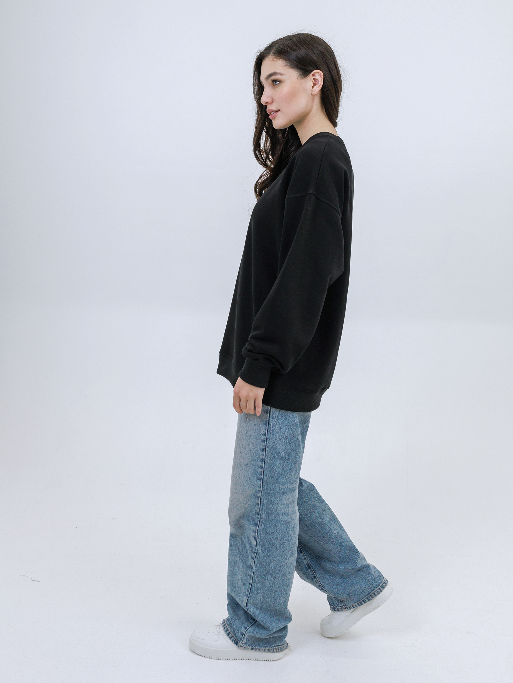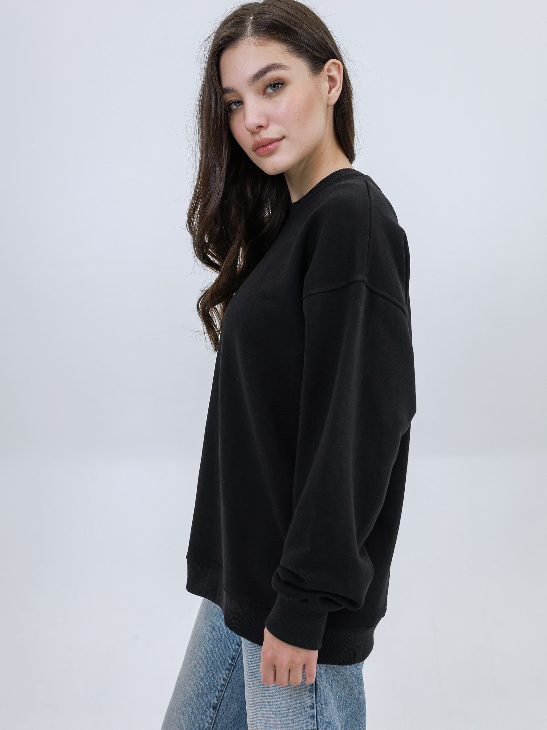 Классический свитшот оверсайз кроя — основа вашего гардероба. Свободный и комфортный силуэт, не сковывающий движений. Изделие выполнено из качественного футера трехнитки — плотного, мягкого и приятного к телу полотна, которое отлично сохраняет тепло и форму после множества стирок.