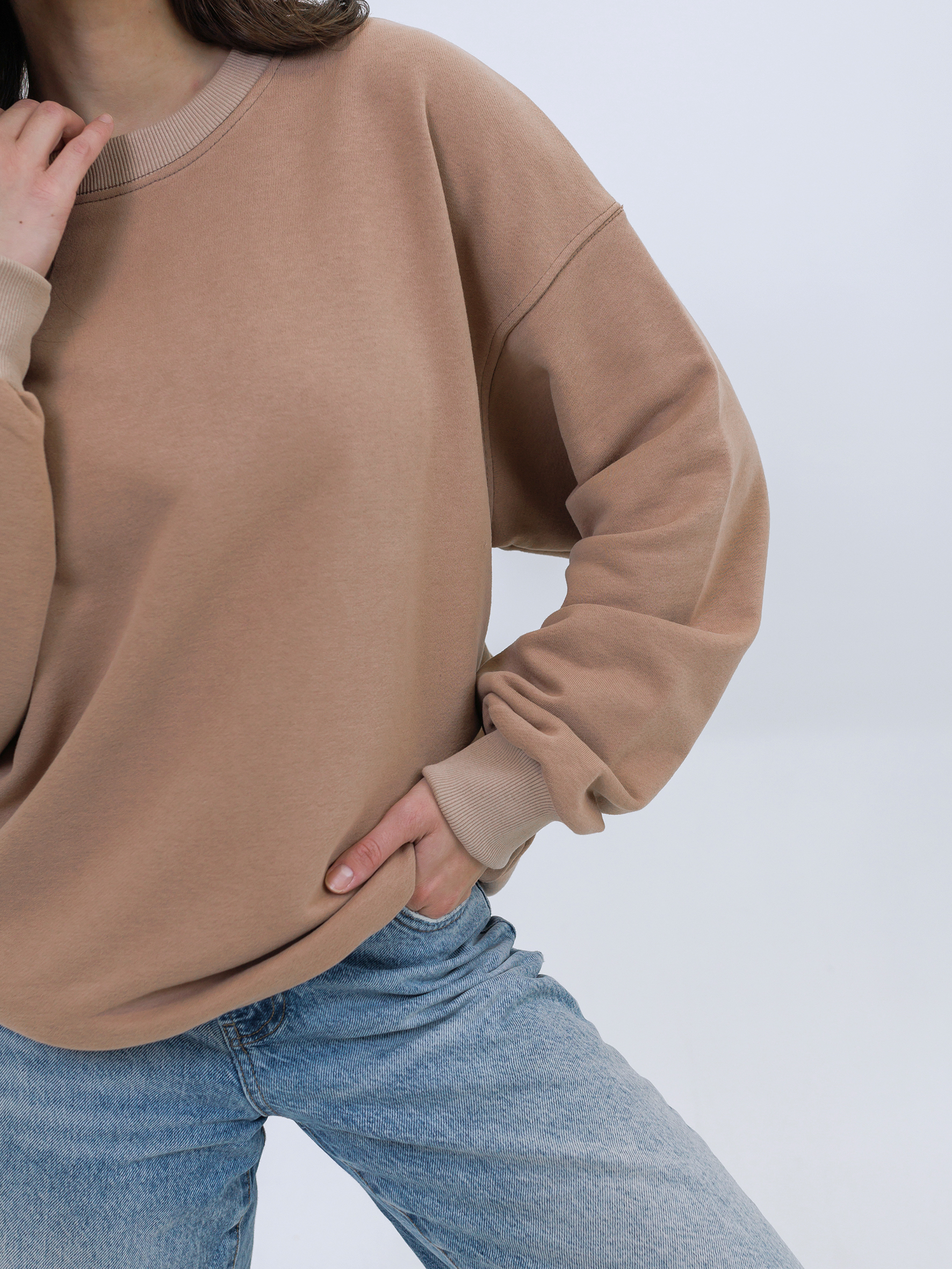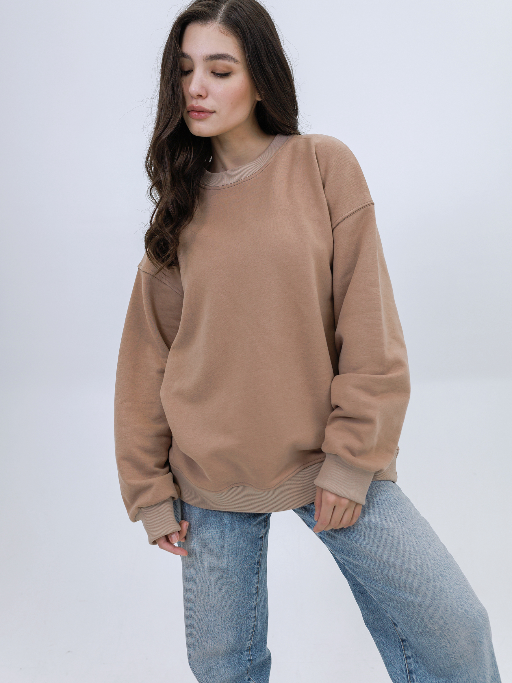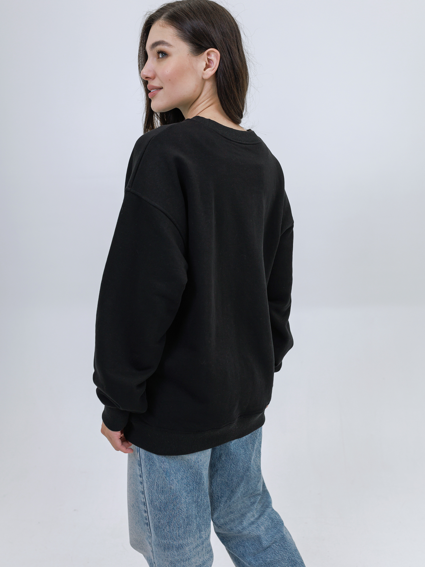 Классический свитшот оверсайз кроя — основа вашего гардероба. Свободный и комфортный силуэт, не сковывающий движений. Изделие выполнено из качественного футера трехнитки — плотного, мягкого и приятного к телу полотна, которое отлично сохраняет тепло и форму после множества стирок.